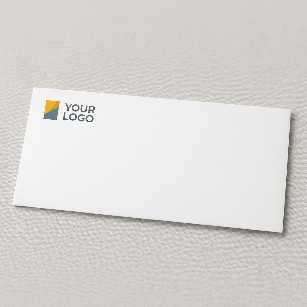 #10 envelopes are ideal for business mailings, invoices, letters, and branded communication. Full-bleed or edge-to-edge printing is not available. Printing can be applied only on the front side with a logo or design covering up to 30% of the printable area. This ensures clean, professional results without ink cracking along the seams or edges.